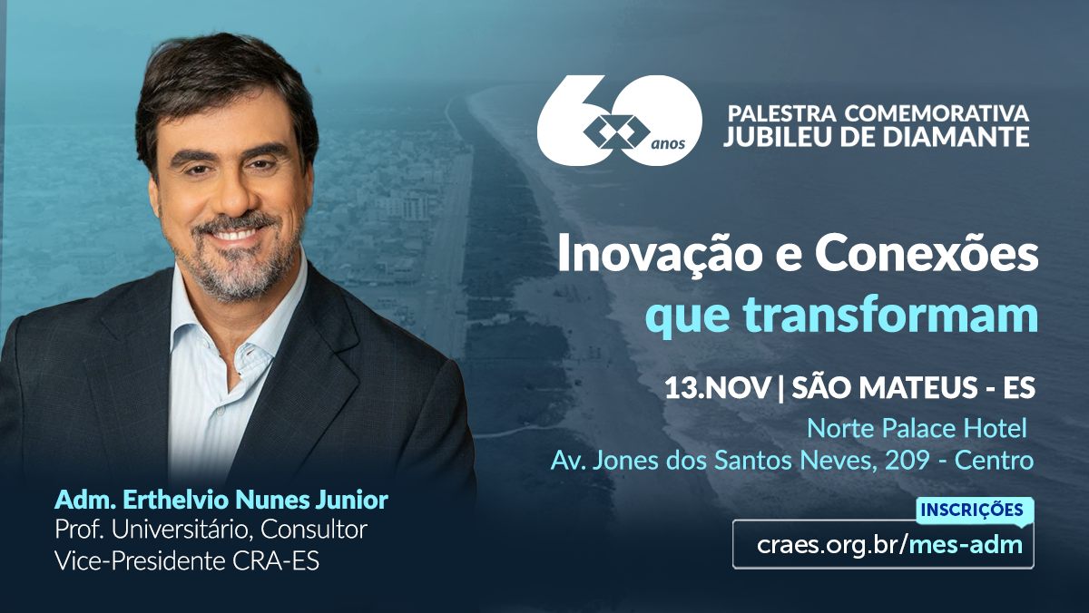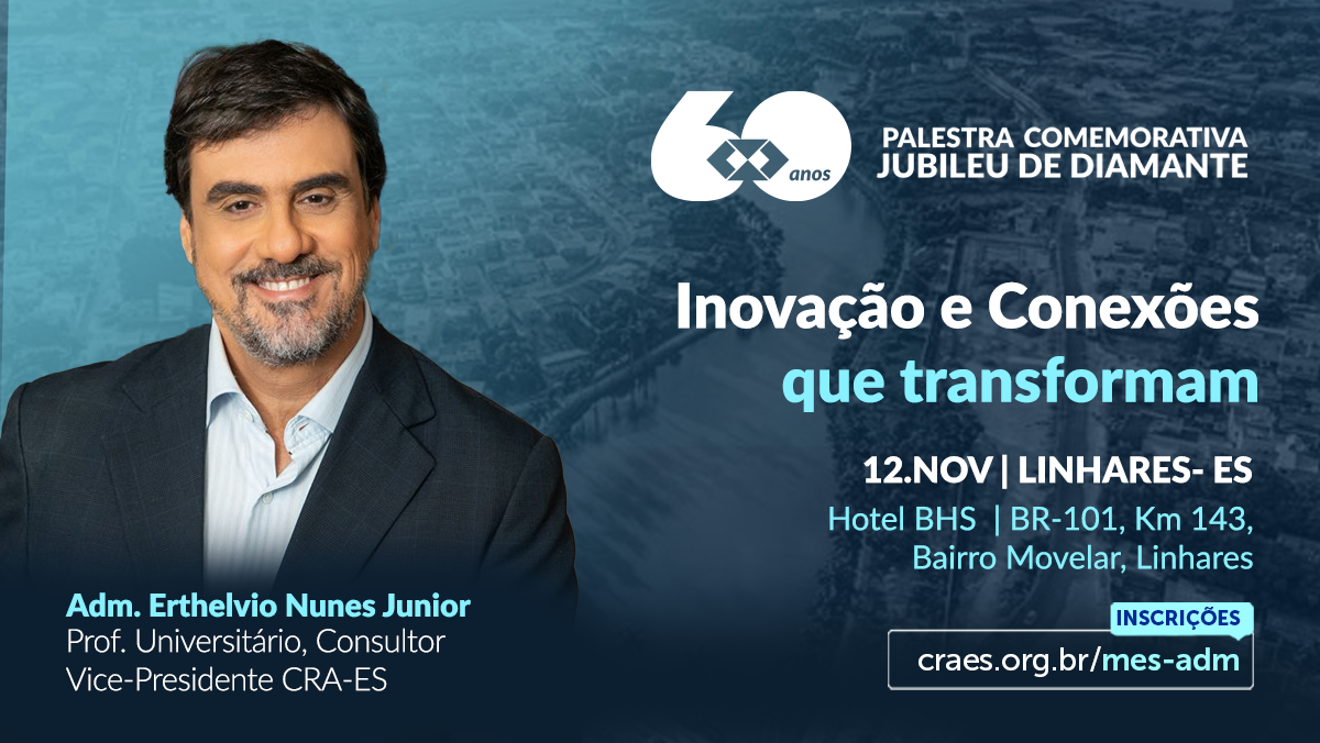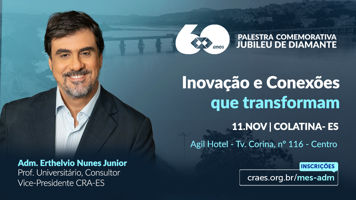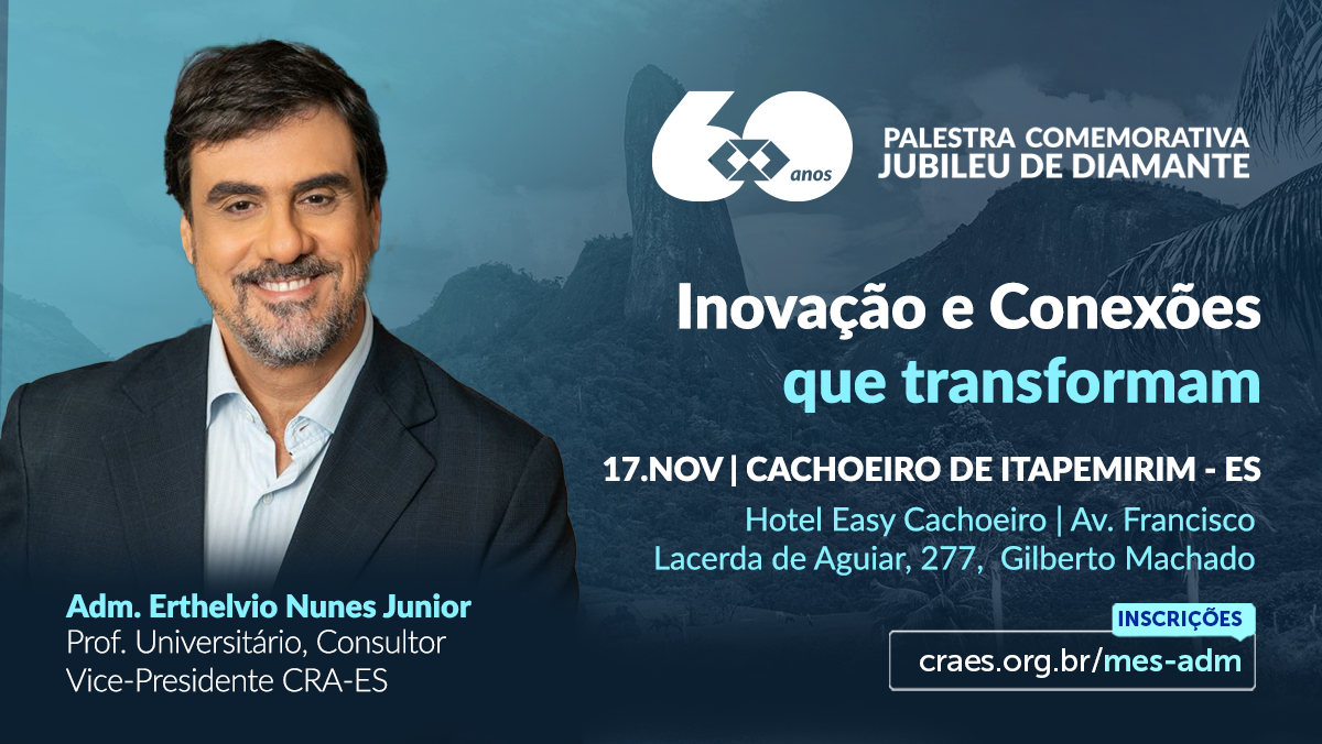 17 novembro - 19:00 : 21:00 Palestra Cachoeiro de Itapemirim: Inovação e Conexões que Transformam | 60 Anos da Administração